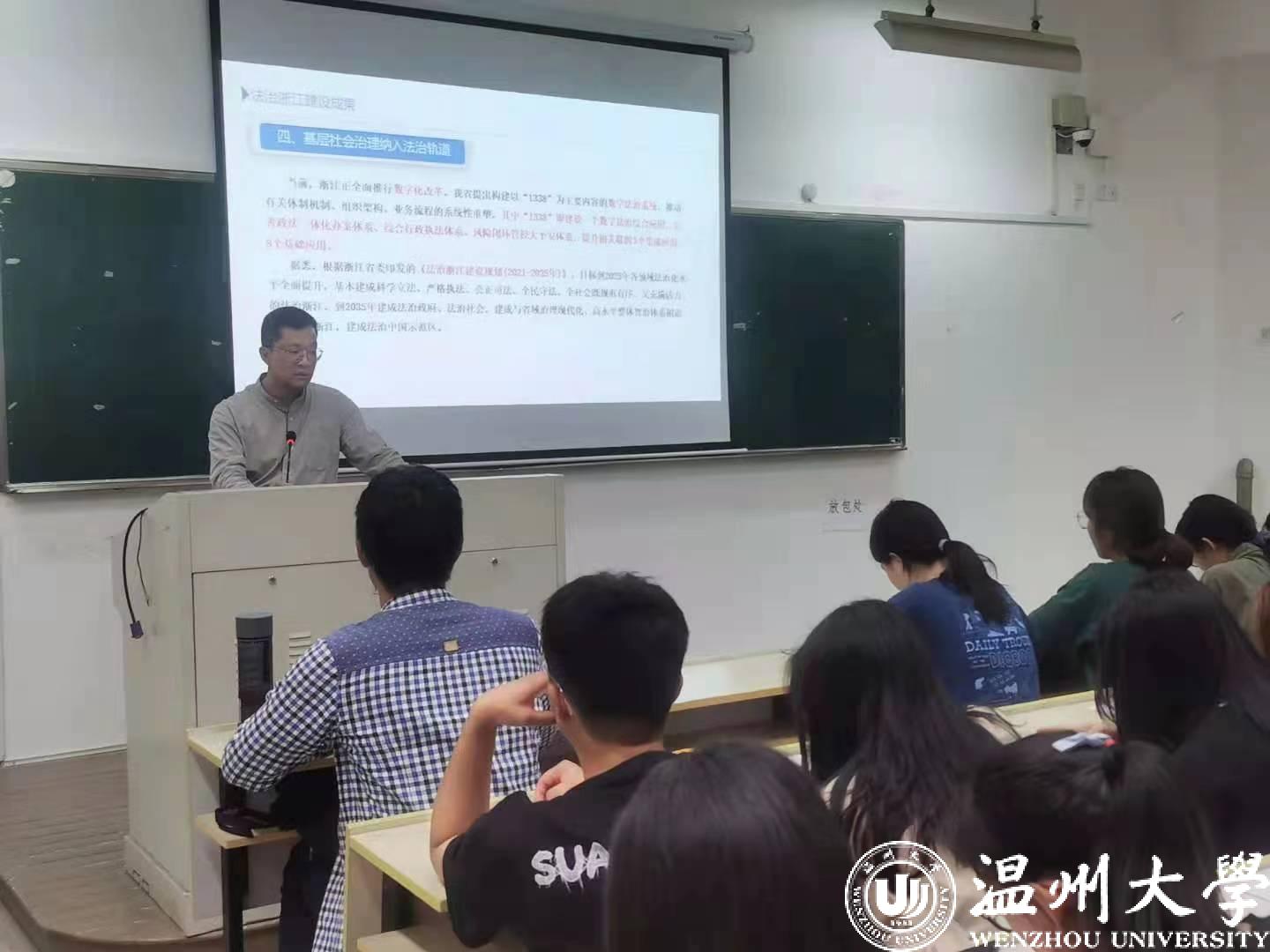 2021年5月26日晚,yl永利集团官网登录2021年第二期《形势与政策课》在法学楼203教室开讲,公司党委副书记兼纪委书记杨振海老师以“新时代老员工如何深入学习习近平法治思想”为主题,带领同学们深刻领悟习近平法治思想的精神内涵和核心要义,从而进一步学习新时代为什么实行全面依法治国、怎样实行全面依法治国、建设什么样的法治国家等一系列重大问题。yl永利集团官网登录本科生通过线上线下多种方式参与了此次课程。