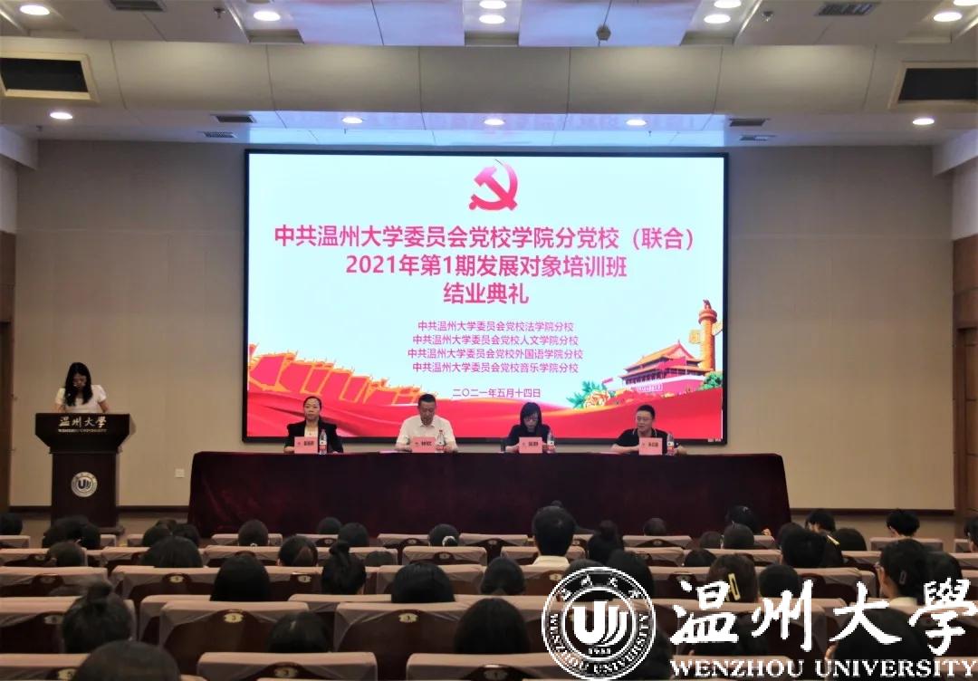 中共永利集团官网委员会党校公司分党校(联合)2021年第1期发展对象培训班结业典礼于5月14日中午12:40在北校区信息楼报告厅圆满举行。出席并参加本次结业典礼的有:公司党委书记、分党校董事长林钦,人文公司党委书记、分党校董事长吴静,外国语公司党委书记、分党校董事长姜海燕,音乐公司党委书记、分党校董事长朱启鑫以及各公司党建工作负责老师、全体发展对象。