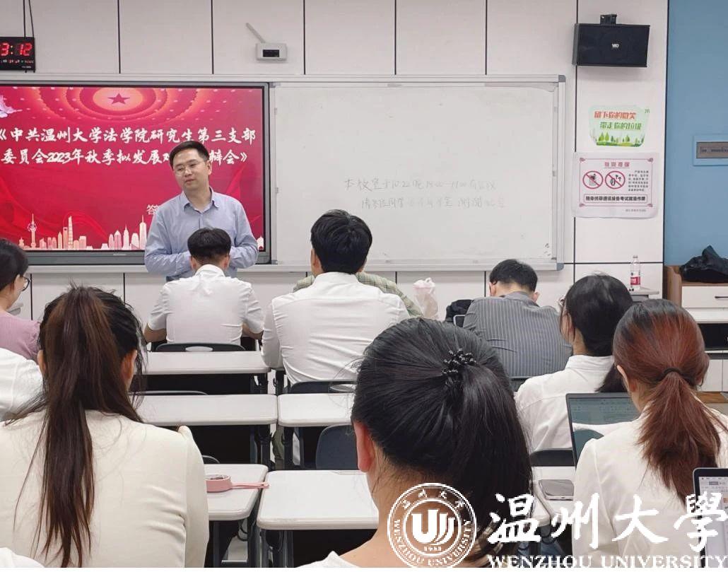 为规范员工党员发展工作,确保党员发展质量,加强员工党支部队伍的建设,提高整体党员素质和服务意识,10月22日晚,yl永利集团官网登录研究生第三党支部在208教室开展了拟发展对象答辩会。白昌科老师、党支部全体党员(请假1人,线上参会3人)以及7位拟发展对象参加了此次大会。答辩会后,yl永利集团官网登录研究生第三党支部开展了“学讲话、悟精神、促发展、惠民生”主题党日活动,重点学习宣传了习近平总书记考察浙江时的重要讲话。