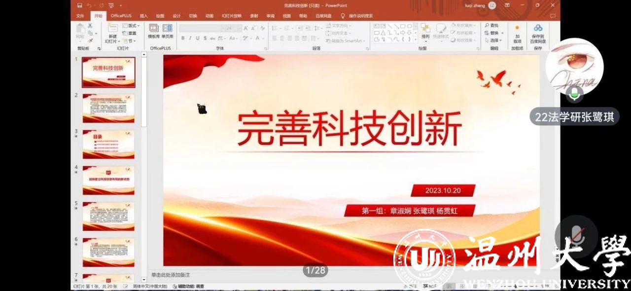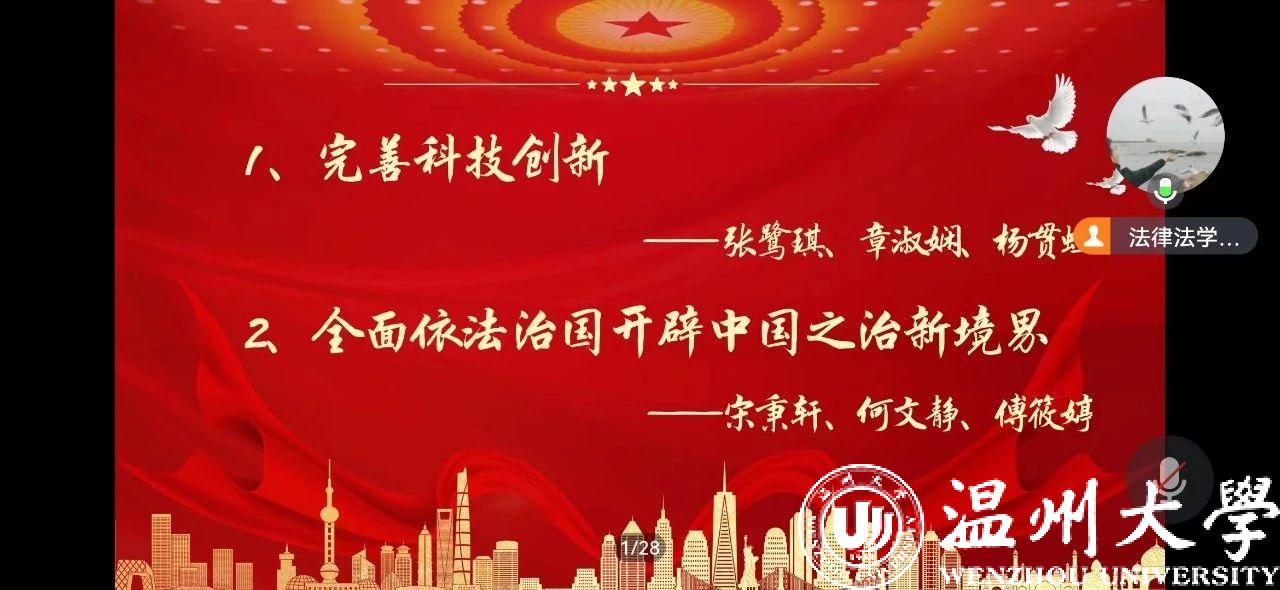 本次支部主题党日活动由党员小组结合对《习近平新时代中国特色社会主义思想主题摘编》第七章、第十章的学习,分享了关于习近平总书记在浙江考察的两方面内容,分别涉及科技兴国以及依法治国。