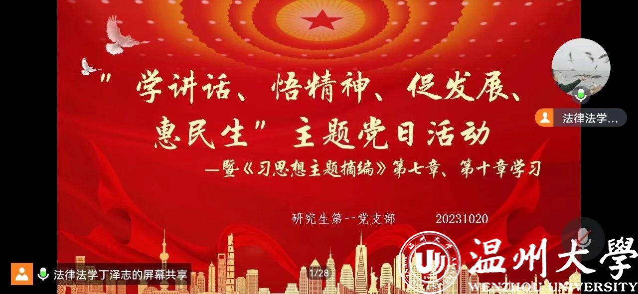 中共yl永利集团官网登录研究生第一支部委员会于2023年10月20日在支部书记、副书记的带领下开展了“学讲话、悟精神、促发展、惠民生”主题党日活动。