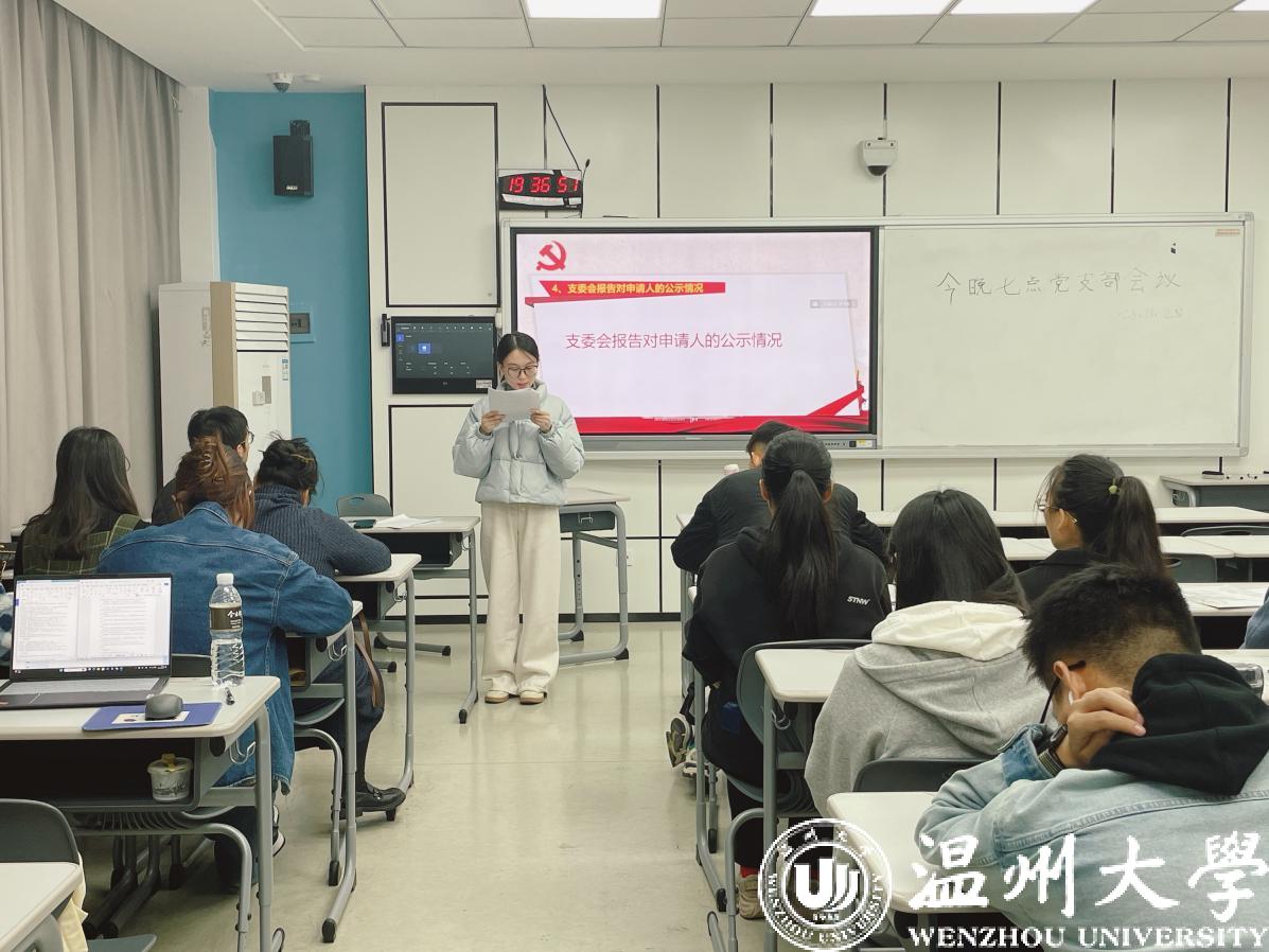 yl永利集团官网登录研究生第二党支部于11月29日开会讨论郑心怡同志的转正问题,会议共有四项议程: