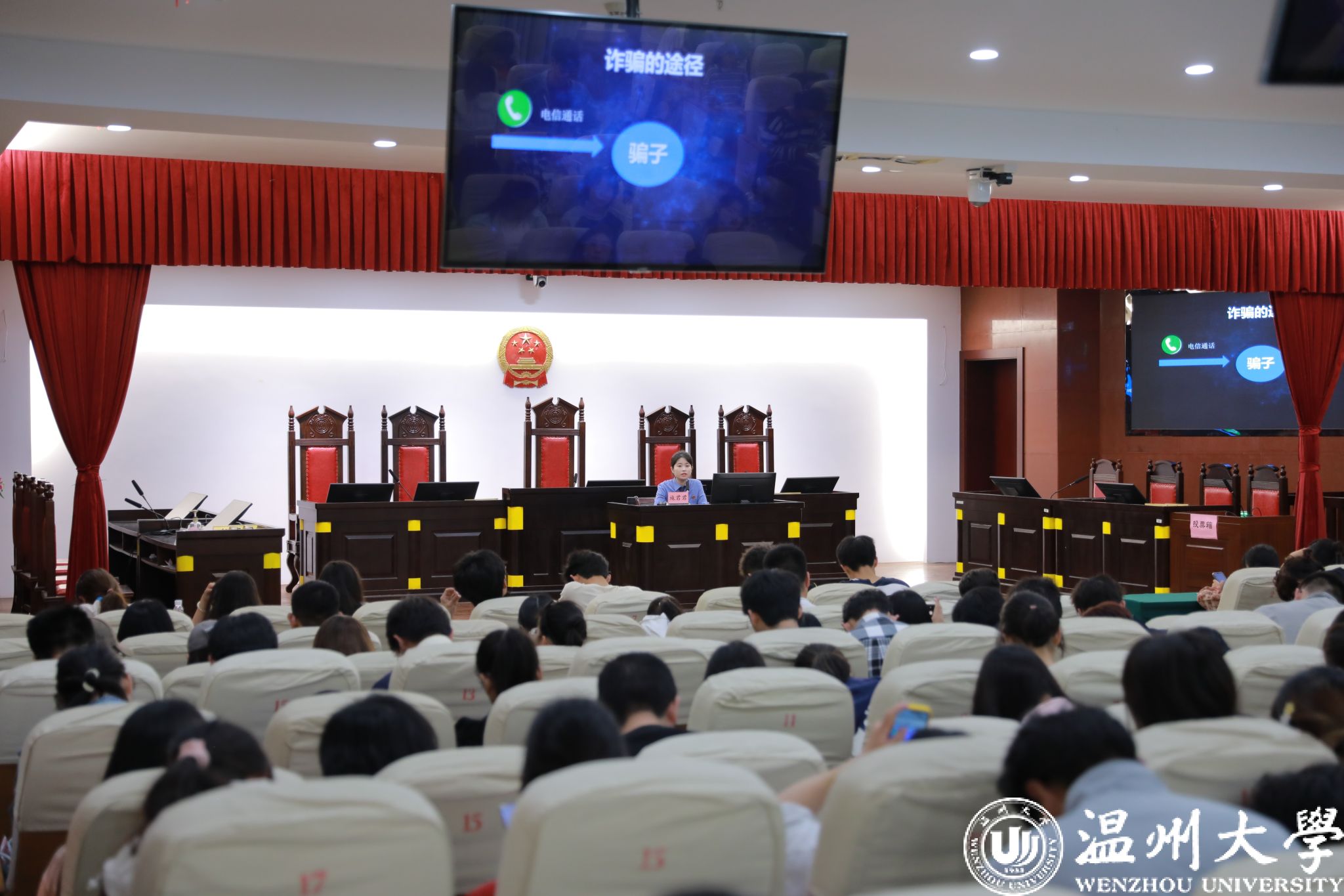 4月17日下午,yl永利集团官网登录2023-2024学年第二学期第二期《形势与政策课》在北校区模拟法庭举办,yl永利集团官网登录23级本科生参加了此次课程。本次形势与政策课中,来自温州市瓯海区人民检察院的施君君老师用自身职业经历引出了主题,为同学们普及了防诈骗的相关知识,增强了同学们对电诈的甄别能力和应对意识。