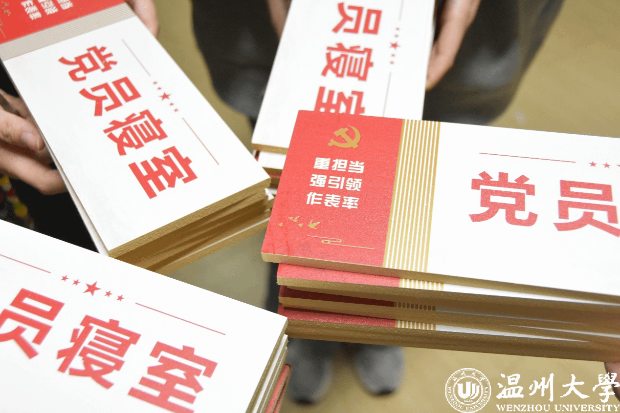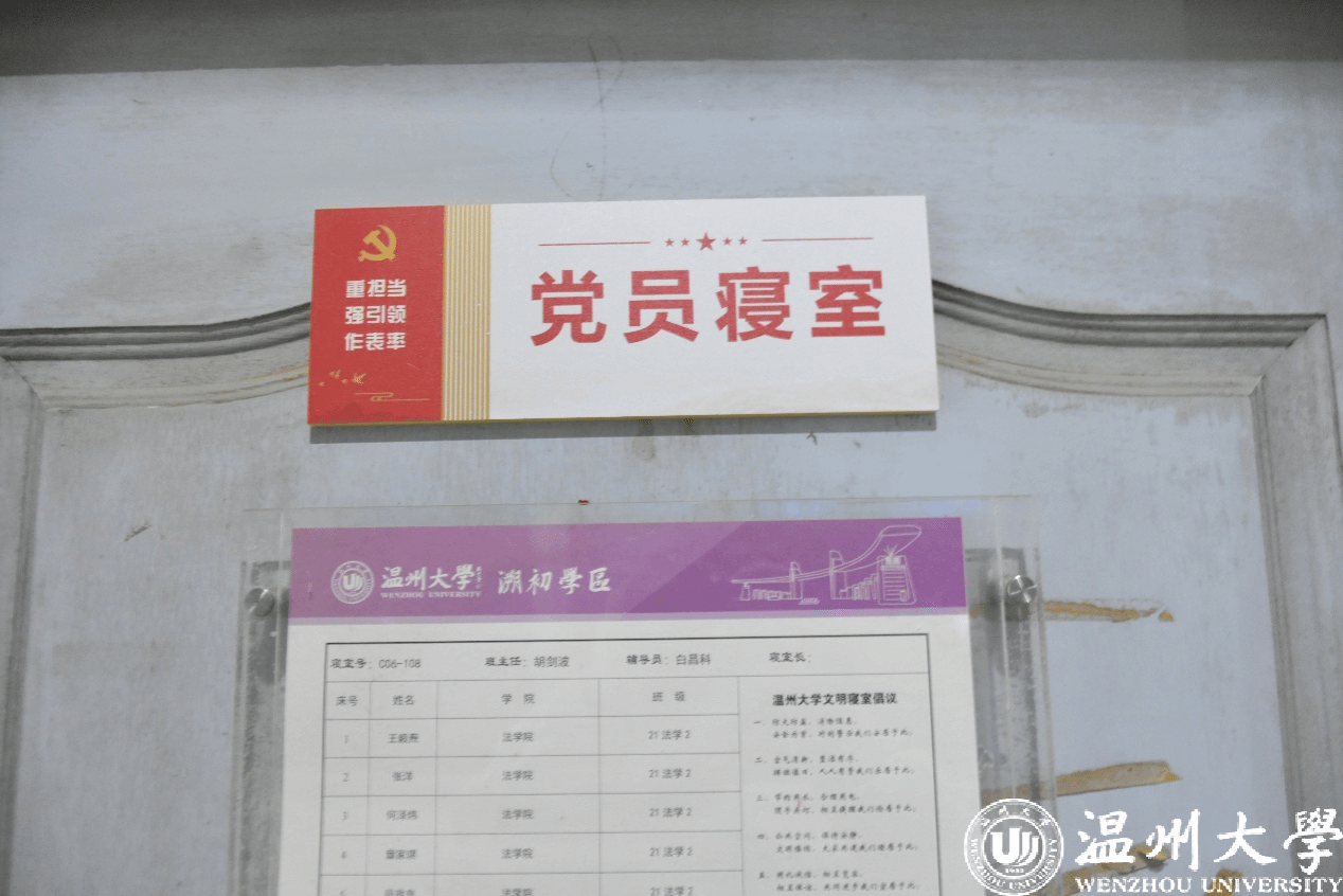 “一名党员就是一面旗帜”。在进行公寓专项检查的同时,邱老师为现有党员身份的同学所在的寝室分发“党员寝室”标牌。这既是党员身份的体现,也是对党员同志时刻发挥模范带头作用的重视。
