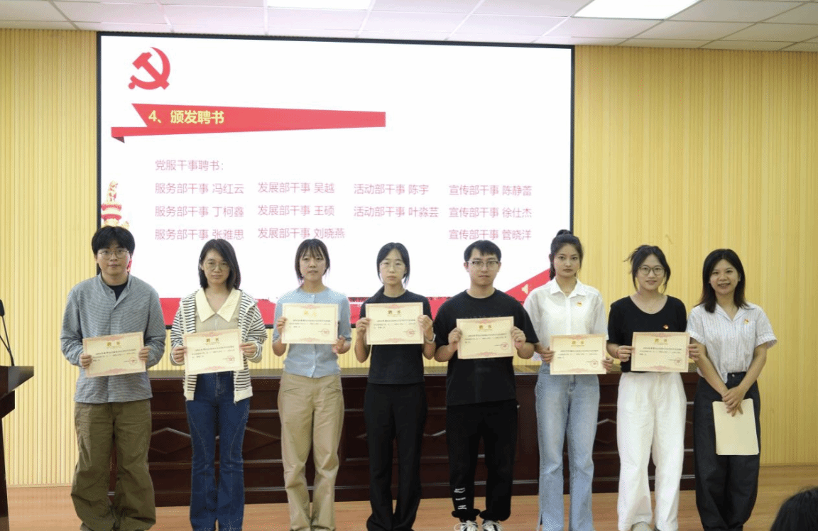 会上,各员工党支部书记为现任党服骨干、支部助理及部门负责人颁发聘书。红色的聘书不仅是身份的认证,更是“为党育人、为国育才”使命的传递,激励着每一位成员以更昂扬的姿态投身党务工作。此外,大会还对本年度各党支部优秀党务工作者、党务工作积极分子进行表彰,为全体成员树立榜样标杆。