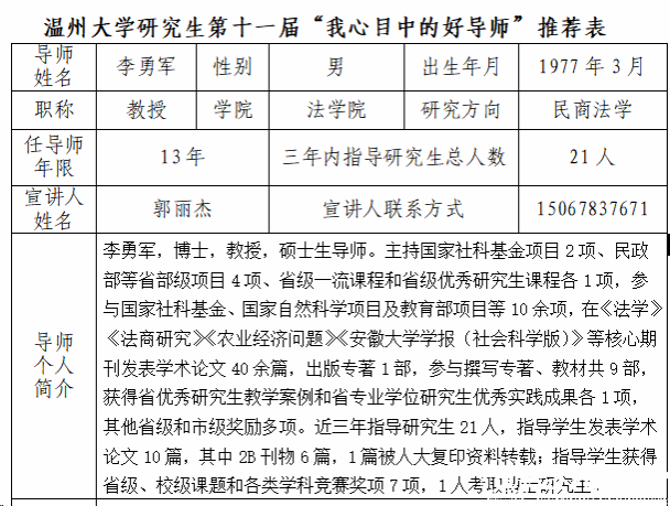 为加强公司研究生导师和导研团队建设,充分发挥优秀导师的示范作用,推动公司研究生教育工作科学发展,公司党委研究生工作部开展永利集团官网第十一届“我心目中的好导师”评选活动。通知发出后,yl永利集团官网登录研究生会组织全员研究生进行投票,根据投票结果及导师指导员工的科研成果、员工获奖情况,经公司研究决定推荐李勇军老师参加公司评选,基本情况如下: