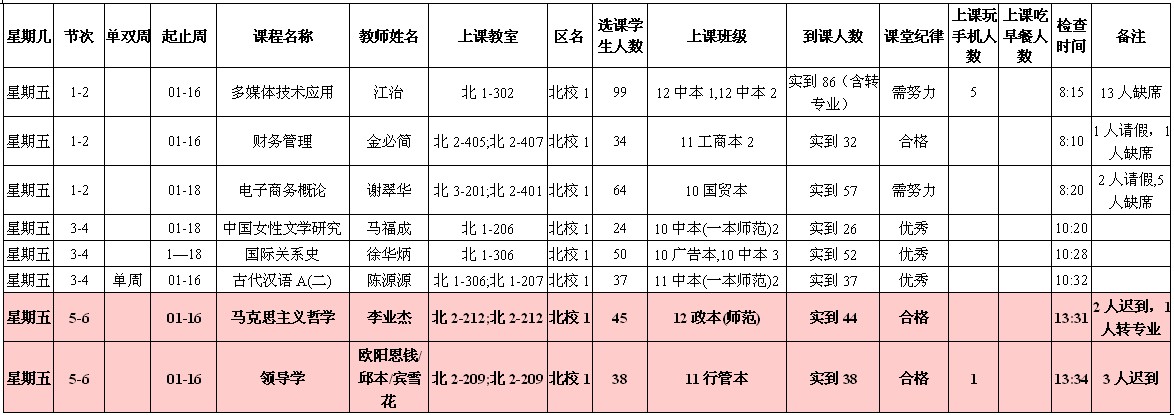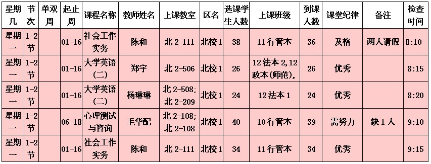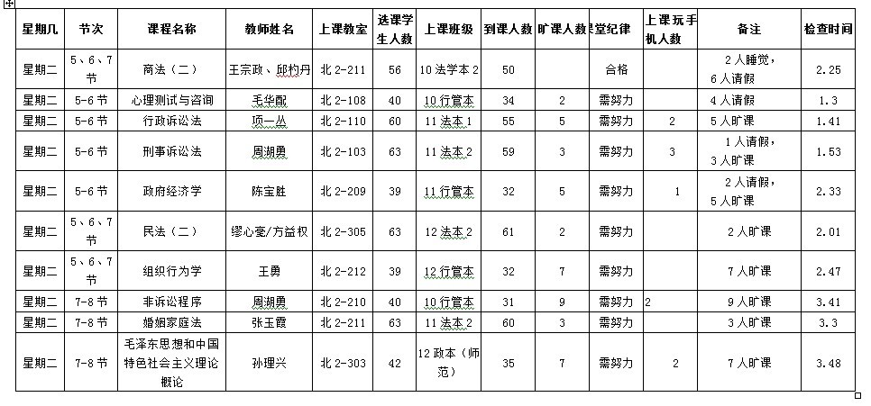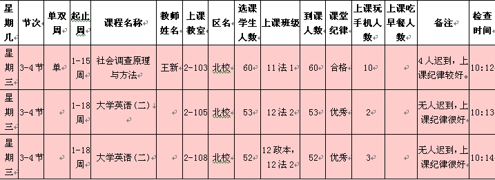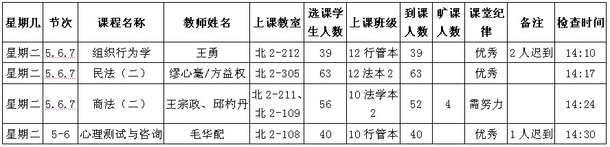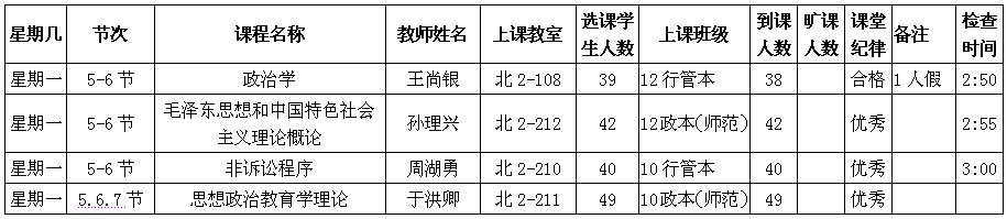 课堂纪律评价标准:1.优秀,人员到齐,纪律良好;2.合格,人员到齐或有请假,纪律一般;3.需努力,有缺席或迟到,纪律欠佳。