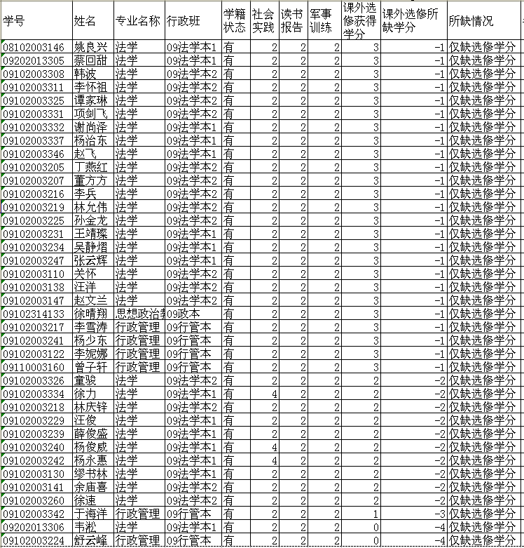 09级毕业班缺课外学分的员工名单(2013年4月17日汇总)