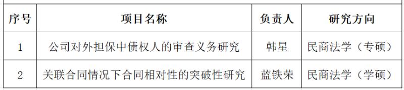 根据《yl永利集团官网登录优秀研究生学位论文培育项目实施方案》的规定,由员工自愿申请并提交相关材料,经公司学术委员会评定,以下《公司对外担保中债权人的审查义务研究》等2个项目评定为院级学位论文培育项目,现将评审结果予以公示: