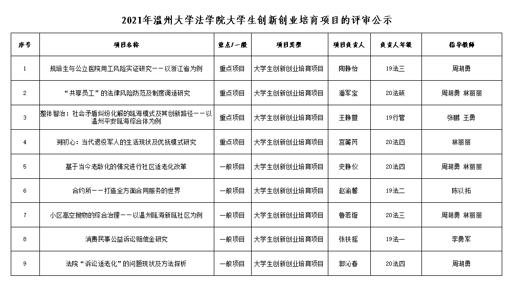 2021年yl永利集团官网登录老员工创新创业培育项目评审的公示.xlsx