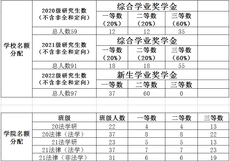(2)综合学业奖学金:2020级、2021级硕士研究生