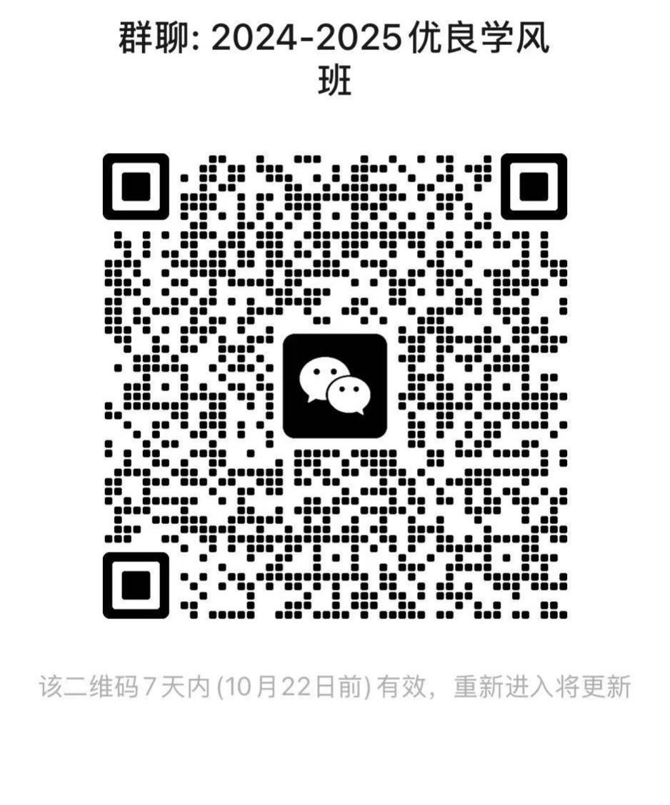 注:学习标兵个人简介和优良学风班简介范本请在各自申请页面下方的“材料下载”中下载。优良学风班申报表(附件2)的电子版及相关支撑材料请于10月24日晚20:00前以压缩包的形式(班级+申报优良学风班)发送至邮箱1434968506@qq.com;学习标兵申报表(附件2)的电子版及相关支撑材料请于10月24日晚20:00前以压缩包的形式(班级+姓名+申报学习标兵)发送至邮箱3390523090@qq.com。优良学风班和学习标兵申报表的纸质版请于10月24日16:30前交公司一楼事务大厅邱老师处,逾期不予申请。请有意愿申报优良学风班和学习标兵的同学加入下面的群聊,后续相关事项的通知和答疑会在本群进行。