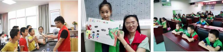 7月10日,实践队在社区开展消防知识宣传讲座、气象知识讲座、防灾减灾绘画课等活动。西山社区的消防理论课让社区的孩子们充分理解了预防火灾的重要性,并学习了火灾中的自救知识。实践队在繁荣社区开展的气象知识讲座让孩子们对常见的自然气象和气象灾害有了一定认识,并且学习了气象灾害中的自我保护知识。
