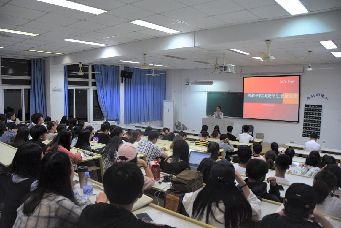 2018年10月8日晚,永利集团官网法政公司团委员工会第一次全体会议在法政楼202教室召开。参与本次会议的有法政公司团委书记孙德升老师、周骞老师、团委副书记陈倩倩、团委员工会主席宋卓君、副主席邹帆、陶泓宇、钱勇吉以及全体团学部门成员。