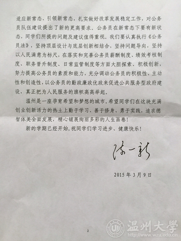 昨天,员工们收到了陈一新书记的回信,信中表示"员工们在学习之余,关注社会热点问题,并积极开展专题调研,分析问题、提出建议,体现了当代老员工良好的社会责任感。"同时寄语老员工们在这块充满创业创新活力的热土上勤于学习、善于修身、勇于实践,追求德智体美全面发展,精心铺展绚丽多彩的人生画卷!