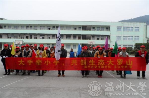 为了传承和发扬"2012感动温州十大人物"、意大利籍外教戴维斯·伊凡保护环境的美德,充分展示两校志愿者们保护环境的决心,12月25日,法政公司联合茶山中学进行了"大手拉小手,共创生态大罗山"活动。