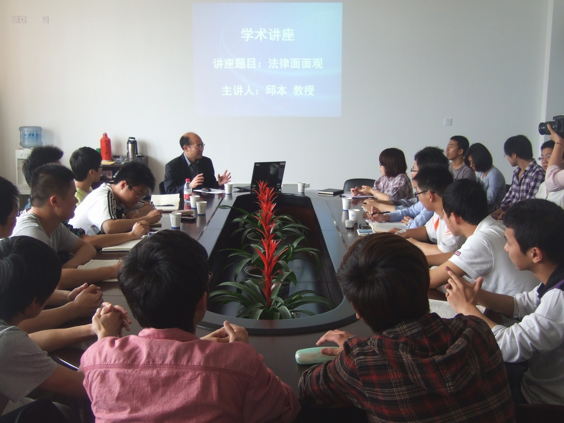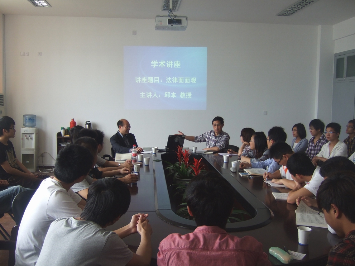 在这次讲座中,邱本教授主要从四个角度对法律渊源和法律真理等问题进行了追溯和探究。这四个角度分别是:一、法律的人性假定。从学理上来说假定"人性恶"是法律产生和存在的人性假设基础,是创造法律的前提。二、法律是成年人的学问。法律不应该晦涩难懂,而应该只要是成年人就能懂的大众化、通俗化的学问。三、法律是规则和原则的统一。法律是有一套规则的,但规则本身也有其局限性。四、法律是百科全书。讲座最后,邱本教授以"探究天地人,追求真善美"与在座同学共勉。本次讲座在热烈的气氛中圆满结束,邱本教授的渊博学识和深入浅出的精彩讲座必定会对同学们的专业学习深有启发。
