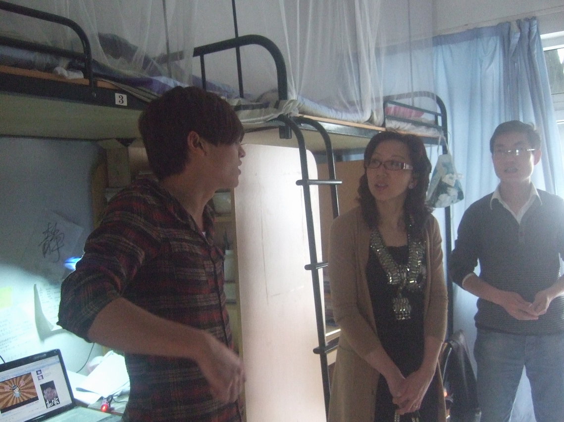 2011年4月27日晚,法政公司党总支副书记严玲红和辅导员孙德升以及部分员工干部一起走访了法政员工寝室。走访过程中,严书记和同学们进行了亲切轻松的交谈,一句句关心的话语,一声声真诚的问候,使宿舍里充满了温情与笑语。看到排列整齐的书籍、干净的桌面、整洁的床铺、积极向上的舍内标语以及独具创意的宿舍装饰,各位老师对同学们的良好生活习惯和寝室文化建设给以了充分肯定和鼓励。在轻松的气氛中,公司老师不但了解了同学们的生活学习情况,还帮助解答解决了一些思想和日常实际问题。