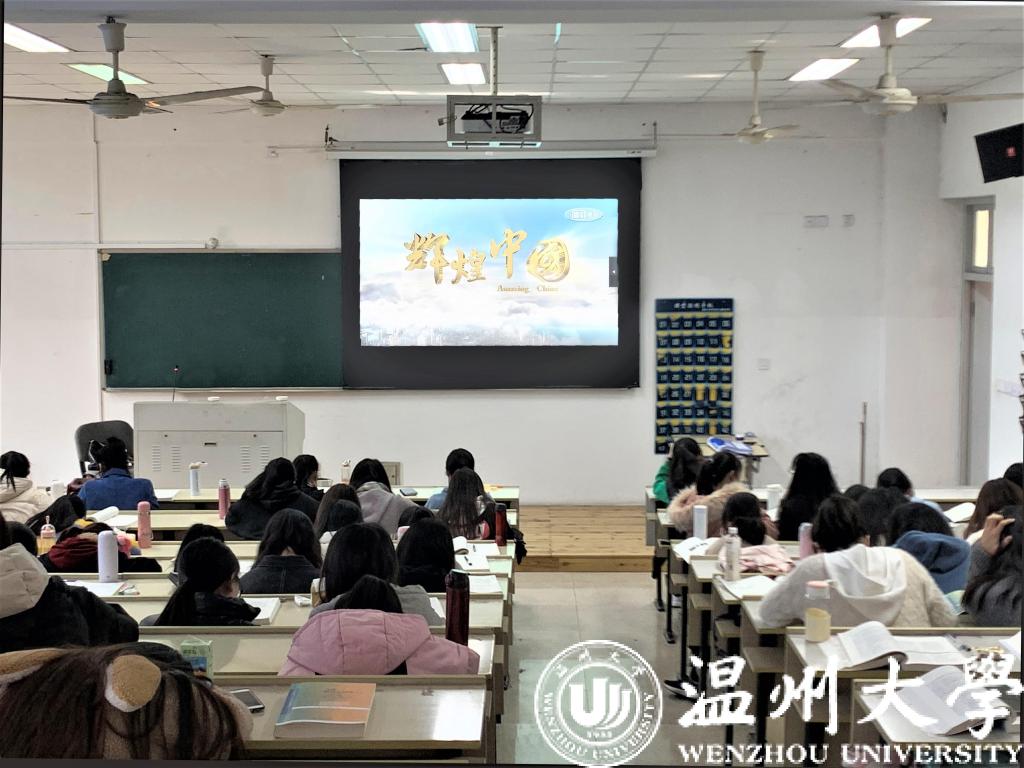 本次课的主要内容为观看《辉煌中国》纪录片。《辉煌中国》是由中共中央宣传部、中央电视台联合制作的六集电视纪录片。全片以创新、协调、绿色、开放、共享的新发展理念为脉络,全面反映党的十八大以来中国经济社会发展取得的巨大成就。《圆梦工程》给同学们拉开了感悟“辉煌力量”的序幕。影片聚焦振华30、港珠澳大桥、长江第四大桥、胡麻岭隧道等大国工程。同学们认真观看,不时啧啧赞叹,为国家重器建造之艰辛、成果之伟大而感慨万千。接着,纪录片播放到了《创新活力》,“惟创新者进,惟创新者强,惟创新者胜。”创新是我们民族最深沉的民族禀赋,焕发出撬动地球的力量,片中同学们看到“中国新四大发明”在改变中国人生活习惯的同时,也促进了世界的发展,现代化的生活方式让全世界的每一天,都是新鲜的!
