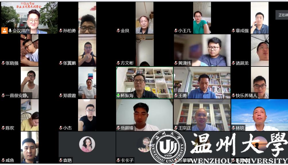 本次线上同学云聚会,很荣幸邀请到了yl永利集团官网登录经理王宗正老师、公司党委书记林钦老师、党委副书记杨振海老师等院领导,任课老师王尚银教授、吴玉宗教授、徐旭东老师、班主任王勇老师等也欣然与会。王经理、林书记、杨副书记均热情洋溢地致辞,表达了公司对于员工的深切关注和关怀,介绍了公司五年来的发展变化,对同学们毕业后的发展予以肯定,并送上祝福寄语,祝愿同学们未来的人生更加美好。王尚银老师、吴玉宗老师是同学们心目中永远的“王老爹”、“吴老爹”,两位温大行管专业的开创者、德高望重的老教授,对于11行管同学印象深刻,感情真挚,均对于同学们表达了各自的祝福和勉励。
