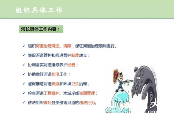 邰书记认为,“河长制”应进一步深化发展:全面落实河长制,并可以将其经验推广到路长制等其它领域;落实最严格的水资源管理制度,严守水资源开发利用控制,用水效率控制,用水功能区限制纳污“三条杠线”;推动河湖生态环境保护与修复,健全完善基础设施,加强河道综合治理。