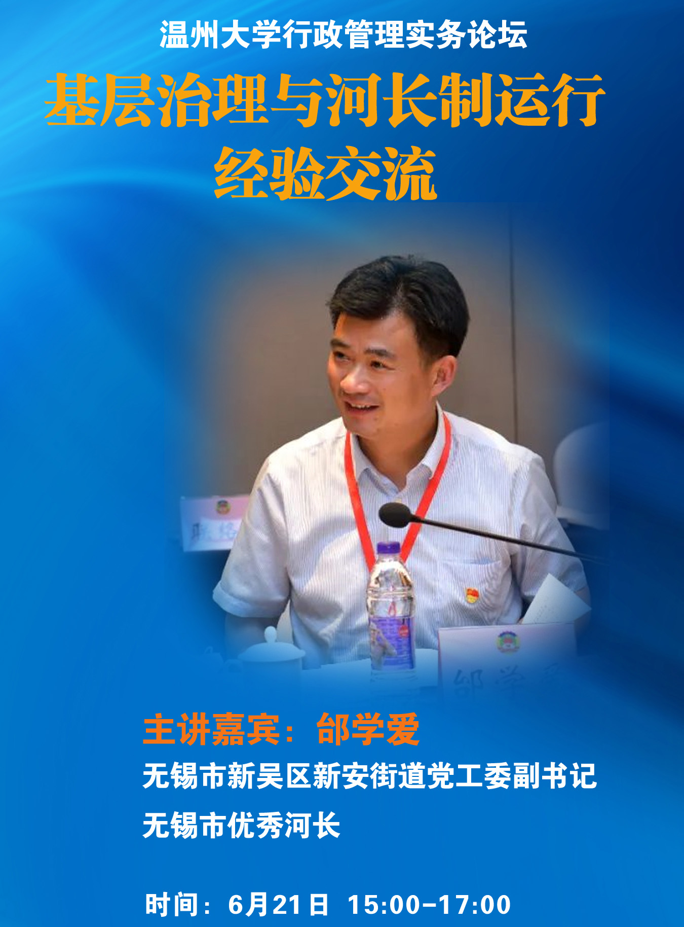 2020年6月21日下午,yl永利集团官网登录行政管理专业师生、19法学部分员工通过腾讯会议线上参与了行政管理实务论坛。江苏省无锡市新吴区新安街道党工委副书记邰学爱受邀担任这次论坛主讲人。作为无锡市优秀河长,邰书记主要就任职期间有关基层治理特别是河长制运行的经验作出交流。