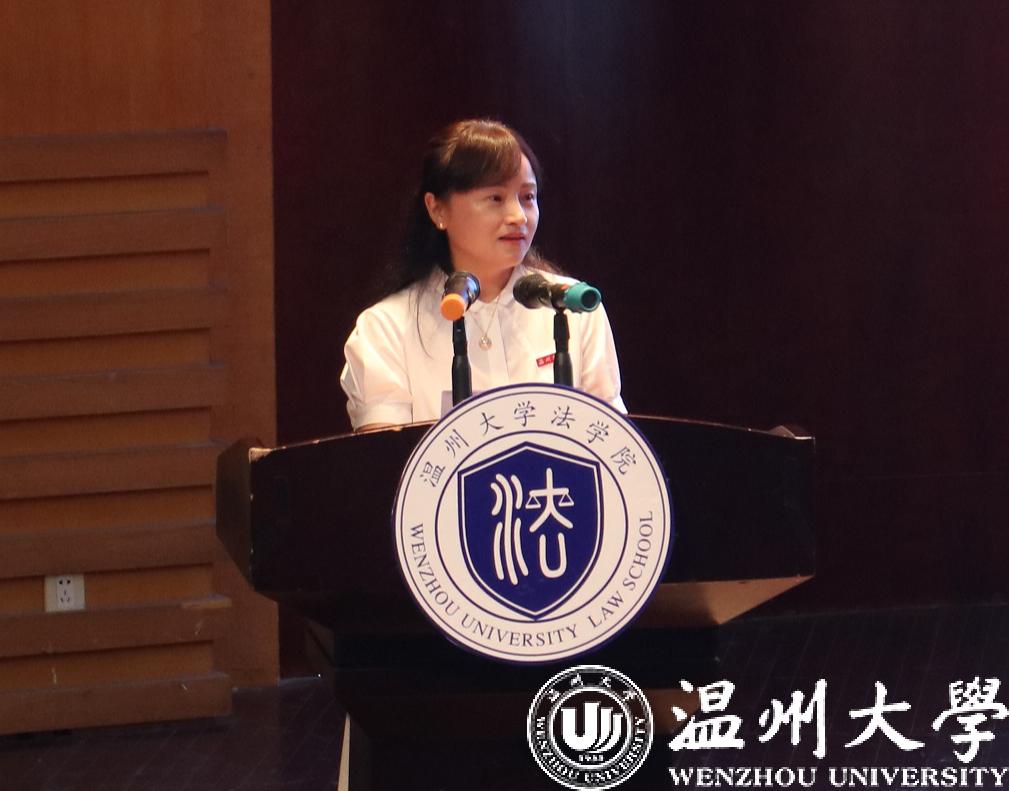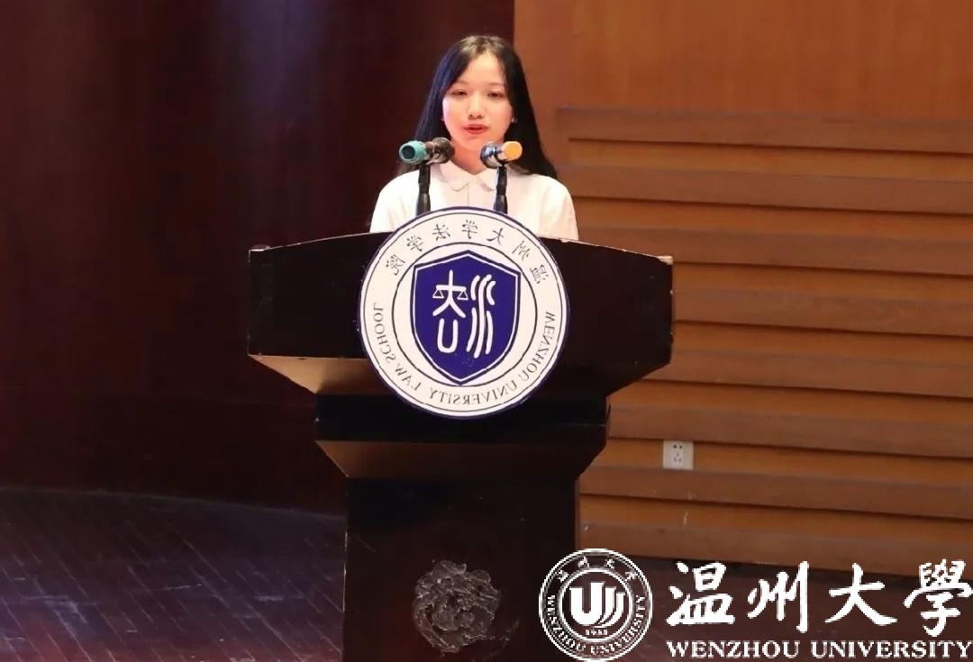 来自2020级法学3班的周佳颖同学和2020级行管班的陈杭娣同学作为新生代表依次上台发言,尽情展现了她们对专业学习的热情、对老员工活的向往与憧憬以及立志成才的决心,倡导全体新生面对新的学习方式和学习平台,始终秉持谦恭自省的态度和专一沉稳的耐心,积极探索、勇于实践。新生代表的憧憬与决心引起了在座新生的共鸣。