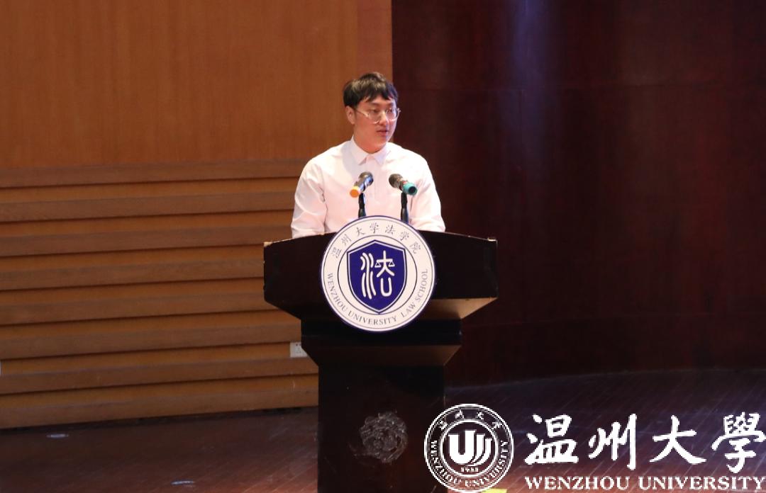 研究生新生代表叶浩男同学结合自己在中央司法警官公司的求学经历,表达了将求真务实、明辨慎思、心存善念等精神贯彻的决心。警校求学和考研的艰难历程让他对温大校训和公司院训有了更深的感触!他也鼓励新生们充分抓住机遇,做到学有所思、思有所悟、悟有所行、行有所成,在拼搏奋斗中发现人生真谛。