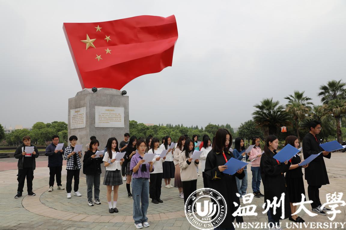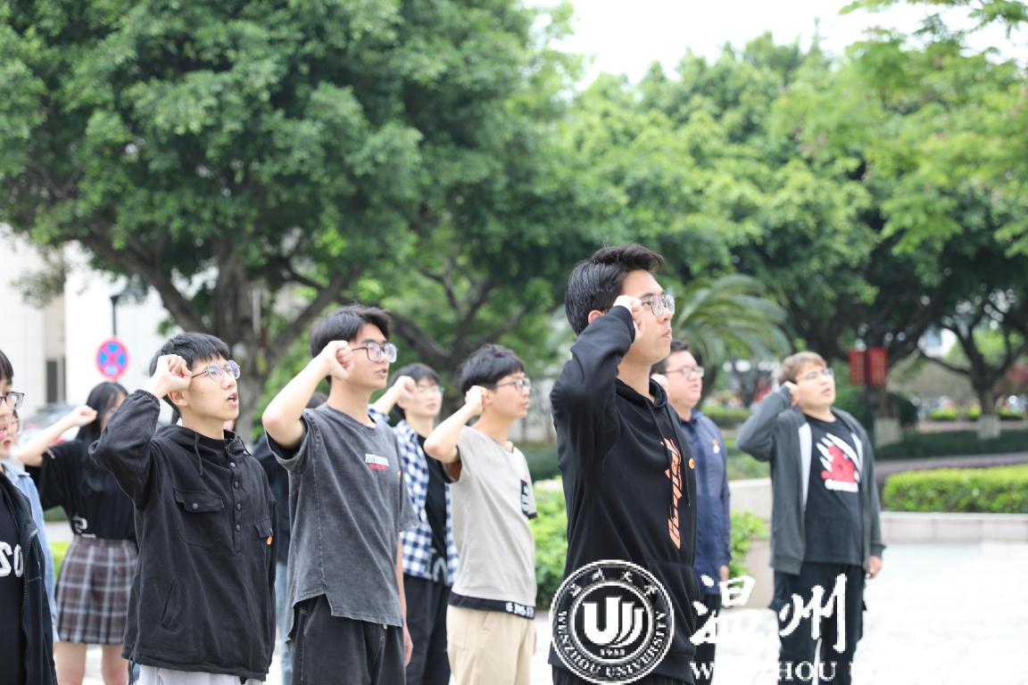 “我志愿加入中国共产主义青年团,坚决拥护中国共产党的领导……”在国旗雕塑下,全体成员在毛欢同学的带领下庄严宣誓。重温入团的庄严仪式,同学们回忆起了入团时的初心,也激励着青年学子牢记总书记的殷殷嘱咐与谆谆教诲,肩负起时代赋予的使命与担当。