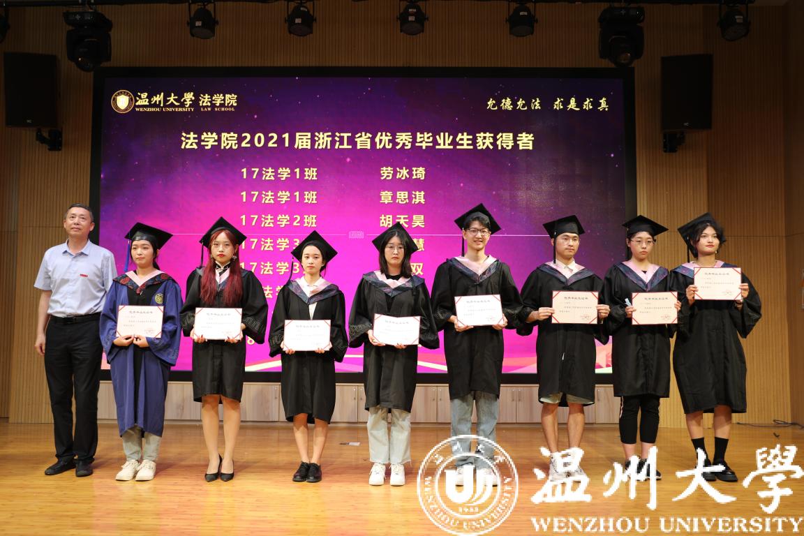 毕业典礼在庄严的国歌声中拉开帷幕。党委书记林钦宣读yl永利集团官网登录2021届浙江省优秀毕业生名单,并颁发证书。