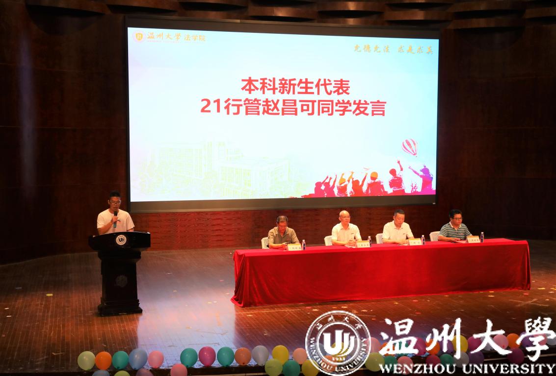 来自2021级法学2班的吴望真同学和2021级行政管理班的赵昌可同学作为新生代表依次上台发言,尽情展现了他们对专业学习的热情、对老员工活的向往与憧憬以及立志成才的决心,也倡议同学们专注研习学科知识,注重自身全面发展,牢记“求学问是、敢为人先”的校训,以高标准要求自己,拥有迎难而上的勇气和坚持奋斗的毅力,将“允德允法,求是求真”的院训,铭记于心,付诸于行。