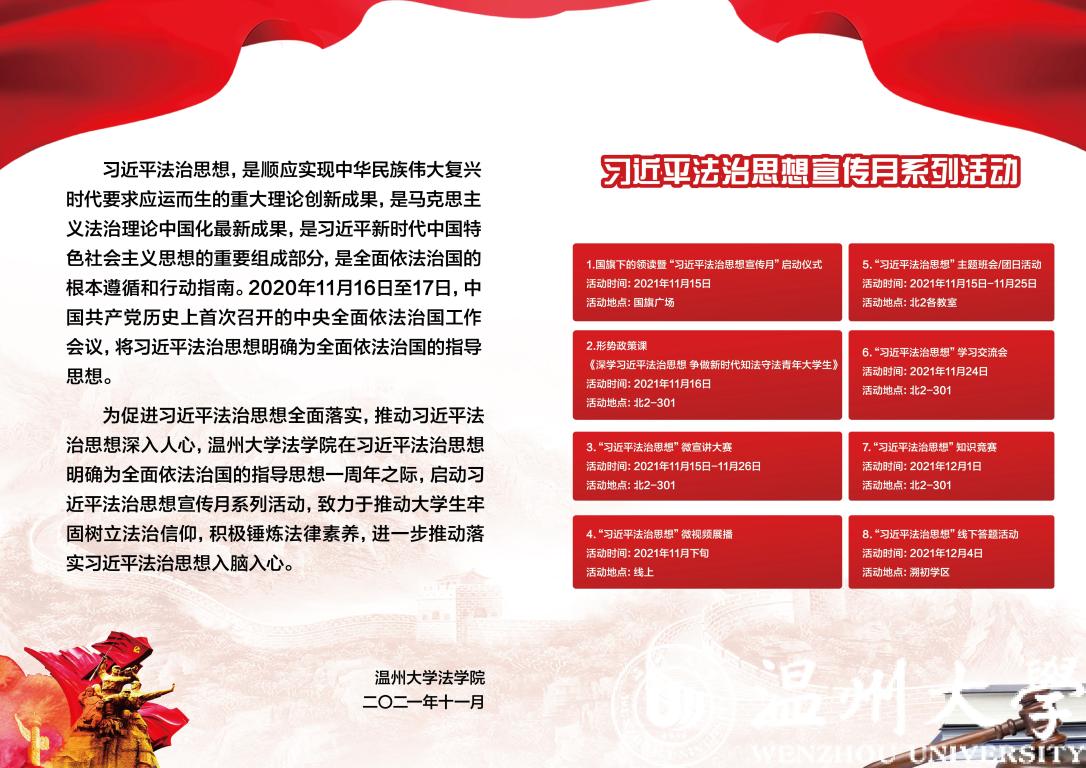 据悉,yl永利集团官网登录将在习近平法治思想宣传月中陆续推出微宣讲大赛、微视频展播、学习分享会、知识竞赛、线下答题等活动,深入开展习近平法治思想学习宣传教育,推动习近平法治思想深入人心。