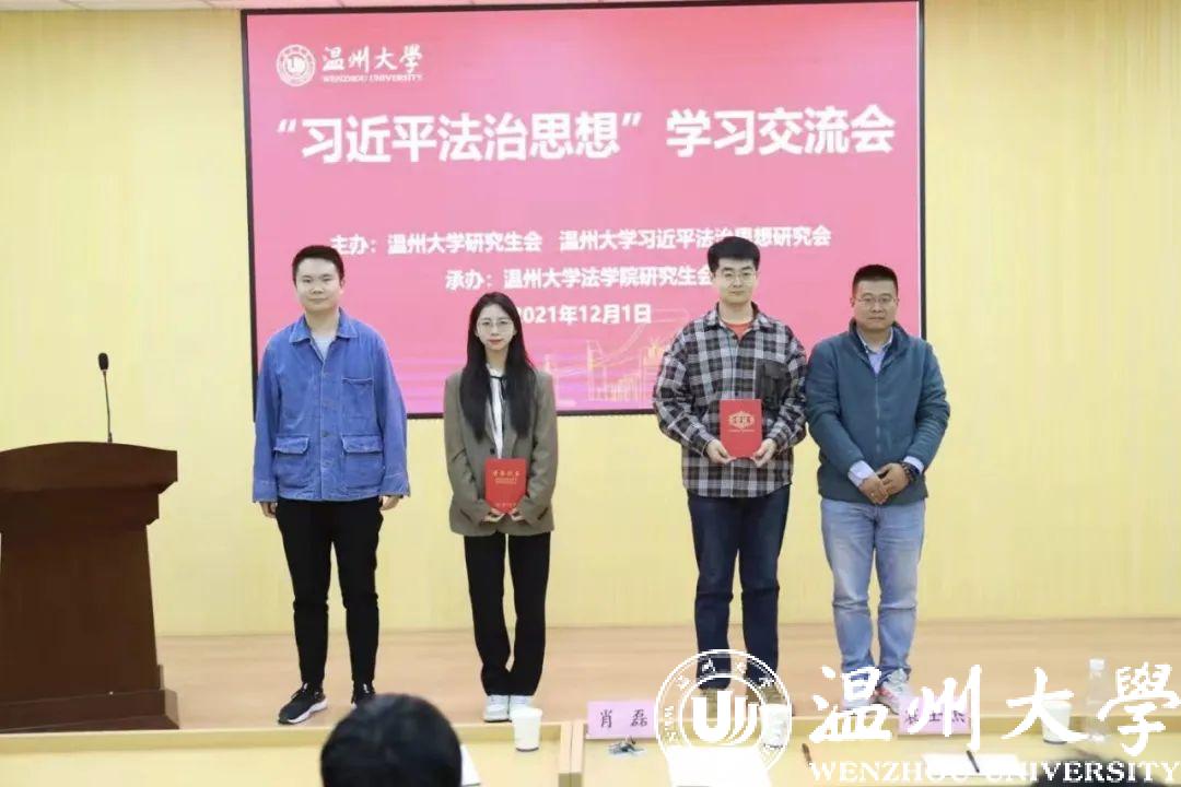 2021年12月1日晚,永利集团官网习近平法治思想学习交流会在北校区yl永利集团官网登录举办。活动由永利集团官网研究生会和永利集团官网习近平法治思想研究会联合举办、yl永利集团官网登录研究生会承办。yl永利集团官网登录肖磊、袁士杰、黄点点三位老师担任评委,各公司研究生到现场参与学习交流。
