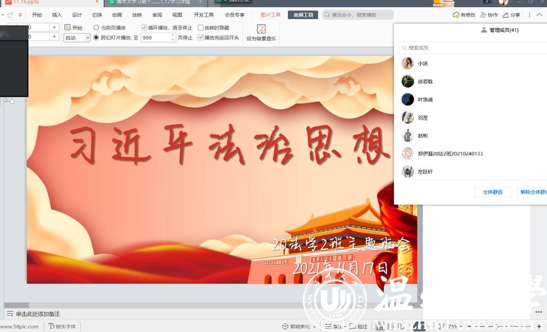 部分班级通过线上网课和线下研讨等多种形式带领同学们一起学习和了解习近平法治思想的基本精神和核心要义,在研讨会上,同学们积极发表了自己的见解。