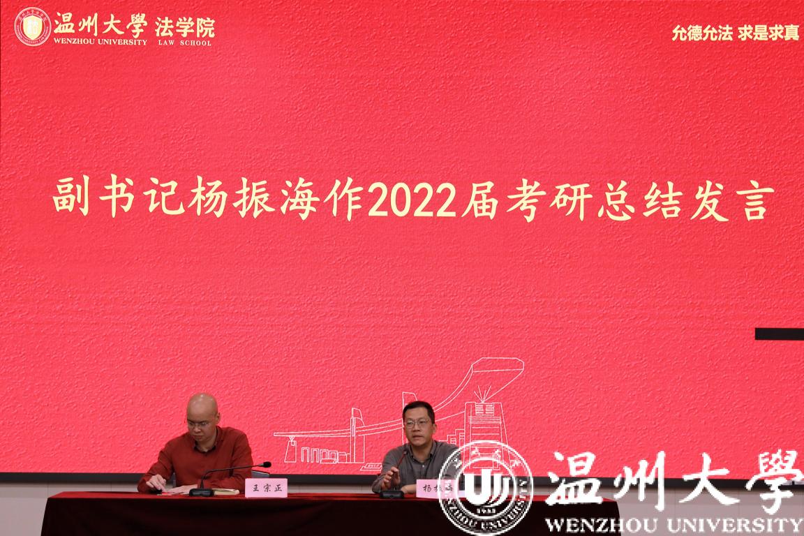 四位同学的分享以前人之经验给学弟学妹们树立了榜样,让立志考研的各位对考研有了更深入的了解,更清晰了自己的目标,更明确了如何科学备考。分享结束后,杨振海副书记作2022届考研总结发言。他公布今年的上岸人数以及考研人数,相较之前,充分肯定了同学们的努力。同时也代表公司对同学们表达充分关切。