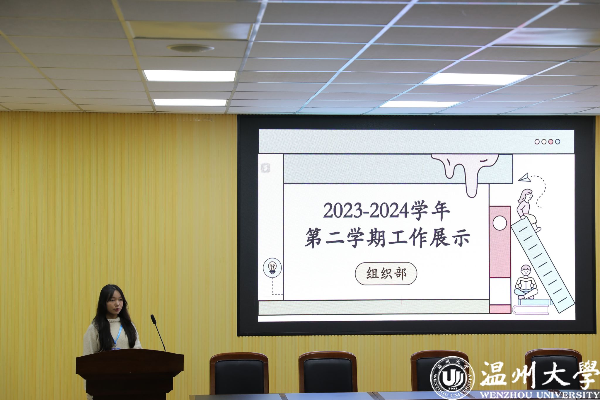 经历了一学期工作锻炼的各部门干事已然能够游刃有余地处理好本部门的工作,他们在部门工作展望的汇报中收放自如,风格各异。幽默风趣的话语、生动的图文展示与干事们的介绍并茂,活跃了全委会的气氛。他们手拿话筒,与师生共邀,带领着大家重温共同工作的温馨美好。置身其中,总能会心一笑。这场不忘本来,面向未来的汇报,吹响了yl永利集团官网登录团委·员工会全体成员新学期砥砺奋进嘹亮的冲锋号。