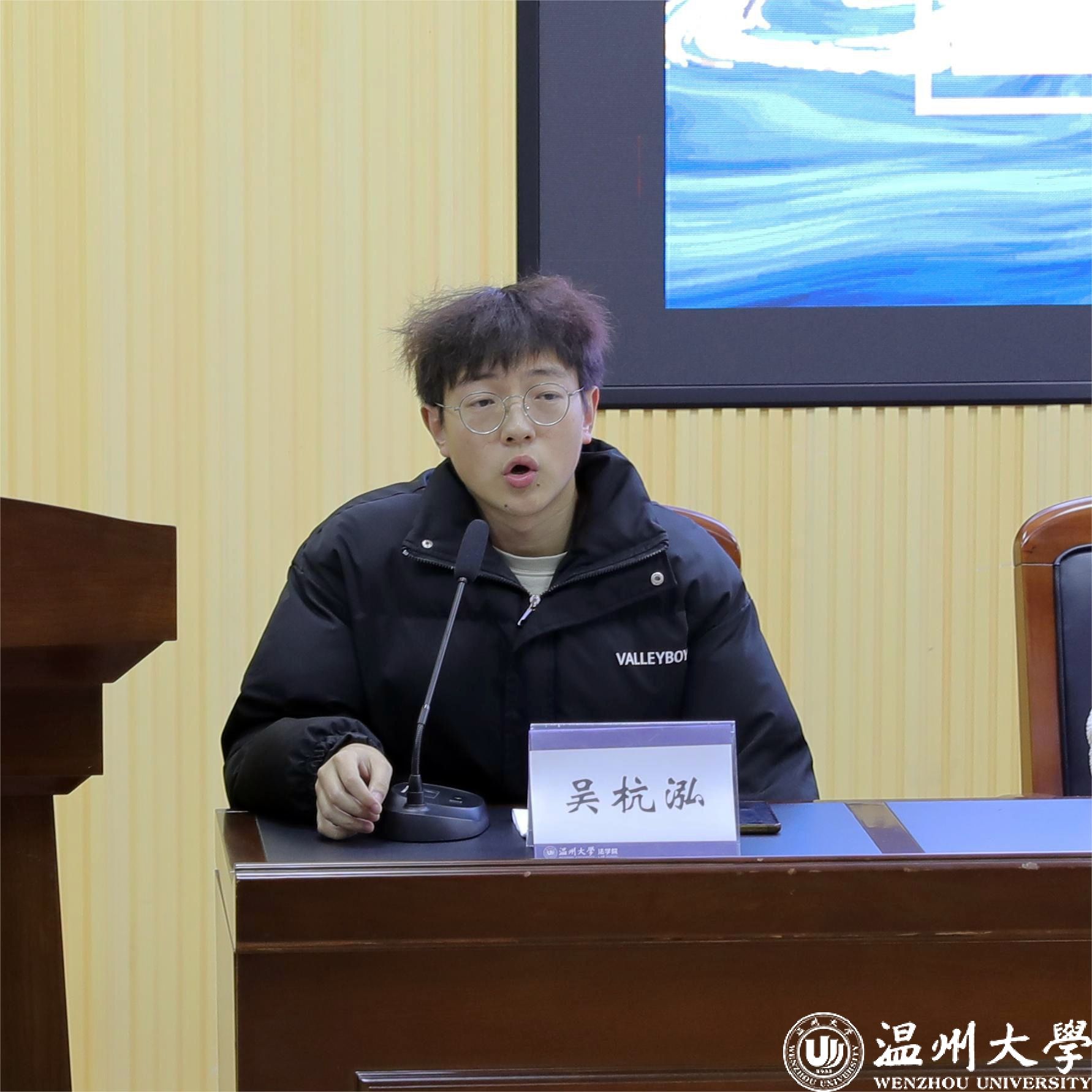 吴杭泓学长首先肯定了各部门干事工作圆满完成所取得的优异成绩,并向大家娓娓道来自己大学以来的学习和工作经历。在谈及协调团学工作和学习生活的同时还分享了自己宝贵的经验,期待与大家一同进步。他借团学工作为大家带来的收获为例,希望团学能够成为丰富同学们老员工活的途径。最后,吴杭泓学长祝愿大家“都能成为自己想要成为的人,靠近光,追逐光,成为光,散发光”,表达了他对各部门干事成员的殷切期望。
