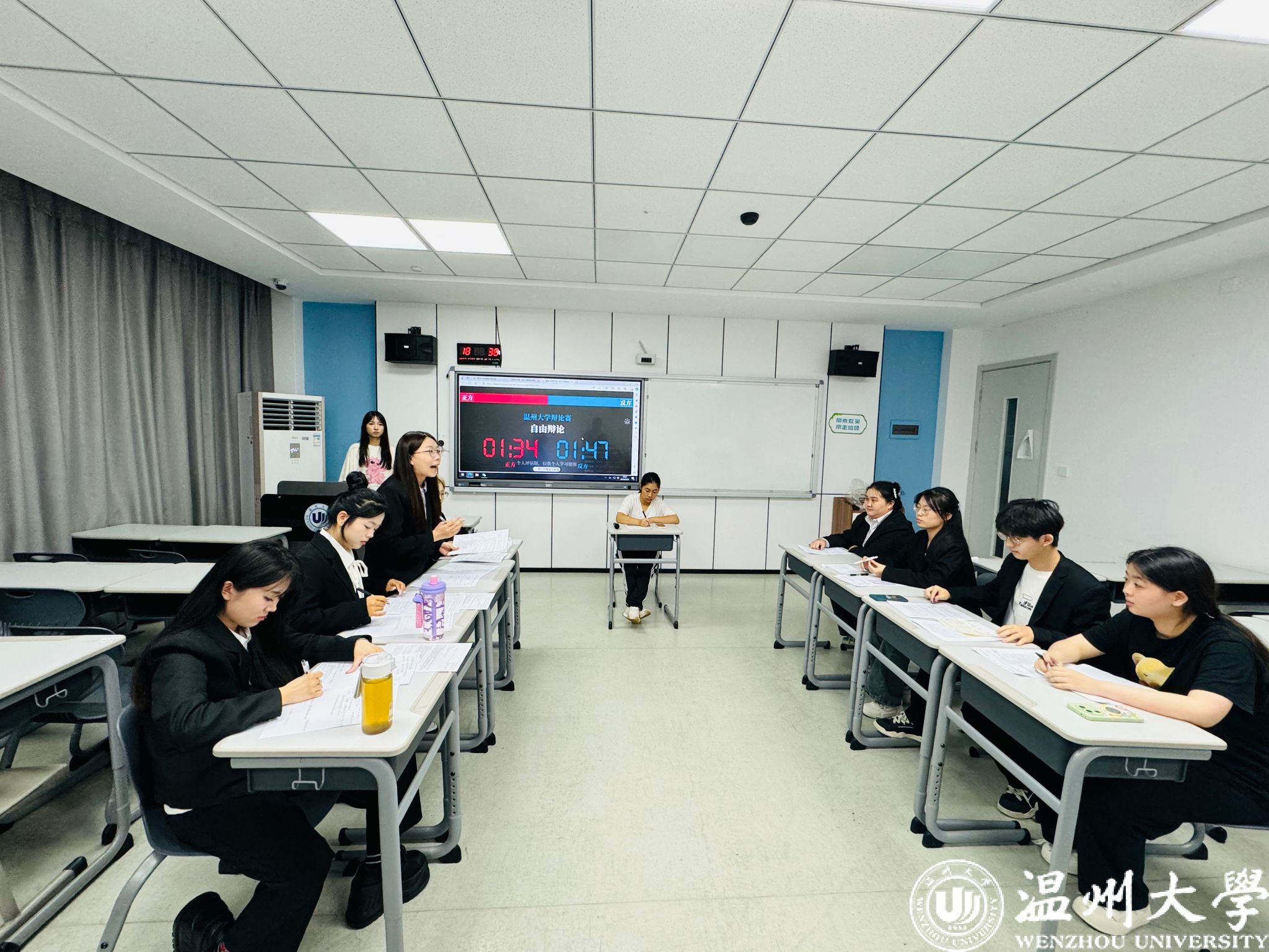 本次比赛共分为10场,按照浙江省老员工法律职业能力竞赛的比赛规则,每场比赛均包含开篇立论、驳论及对辩、盘问及小结、自由辩论和总结陈词。各队伍就“人工智能是否可以深度参与司法决策”“大众舆论是否可以干预司法审判”和“高校教师是否应该享有惩戒权”等热点法律问题展开了激烈的讨论,充分展现了青年员工的扎实功底、法治素养和社会责任感。赛后,评委和部分参赛队员就本次比赛所涉及的专业知识、论辩技巧和赛场礼仪等问题进行了探讨,指出参赛队员在比赛中仍需改进的问题,为进一步提升参赛队员的竞赛技能打下了基础。