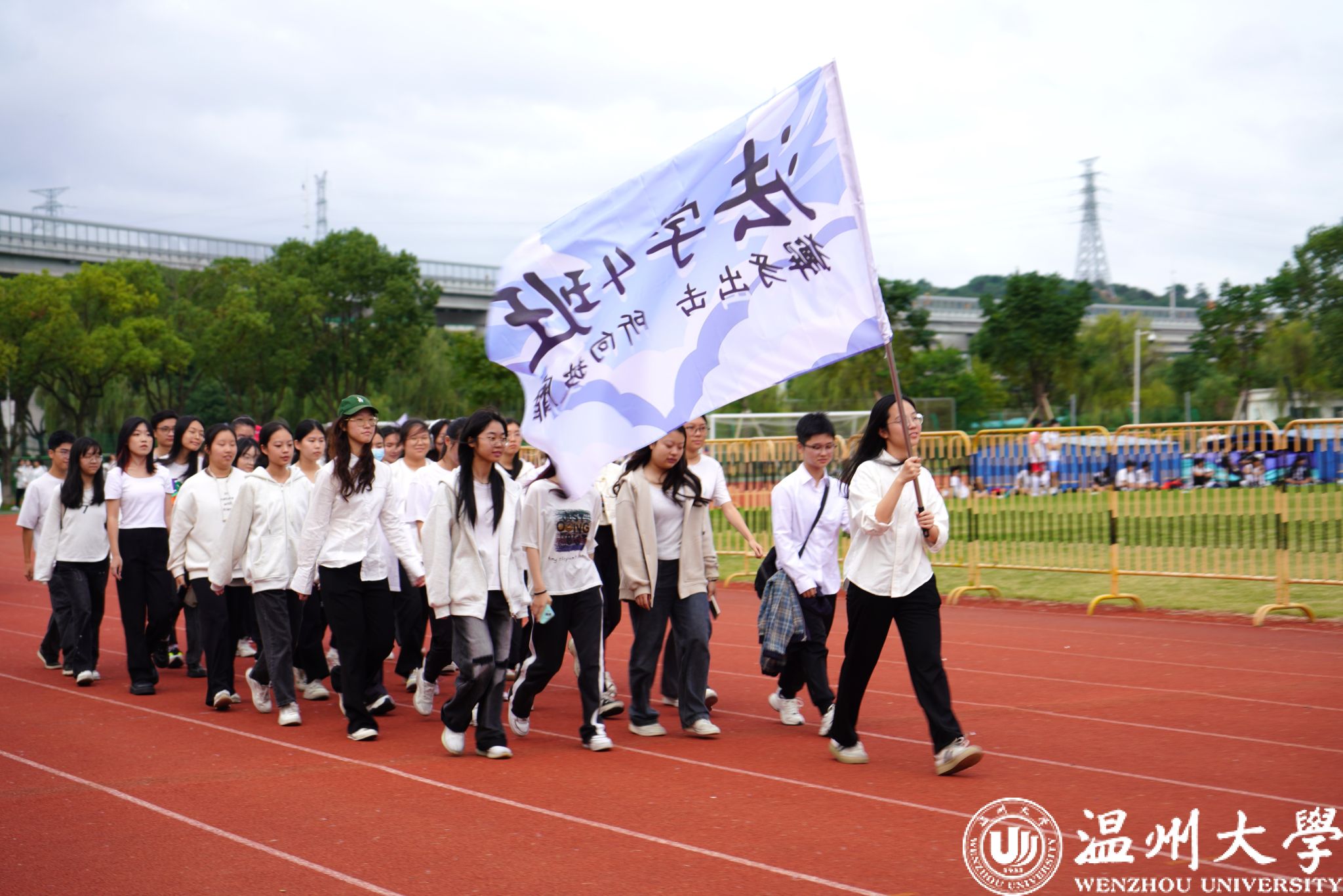 首先,迎面向我们走来的是国旗护卫队。看,他们以昂扬的姿态,迈着铿锵的步伐,引领于各班方阵前列。班旗飘扬,每一面旗帜无不彰显着他们奋发向上的精神风貌与跃动着的青春活力。