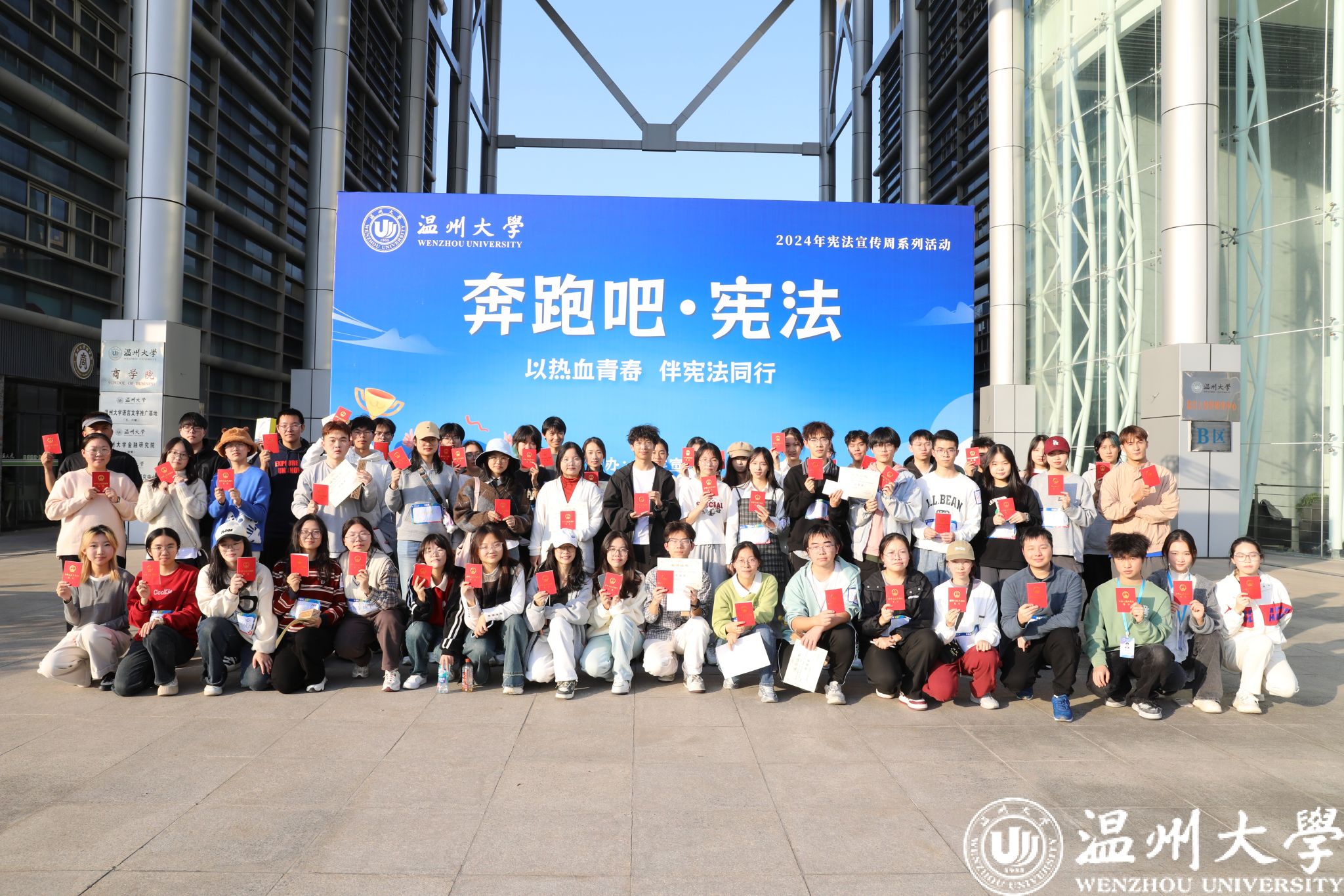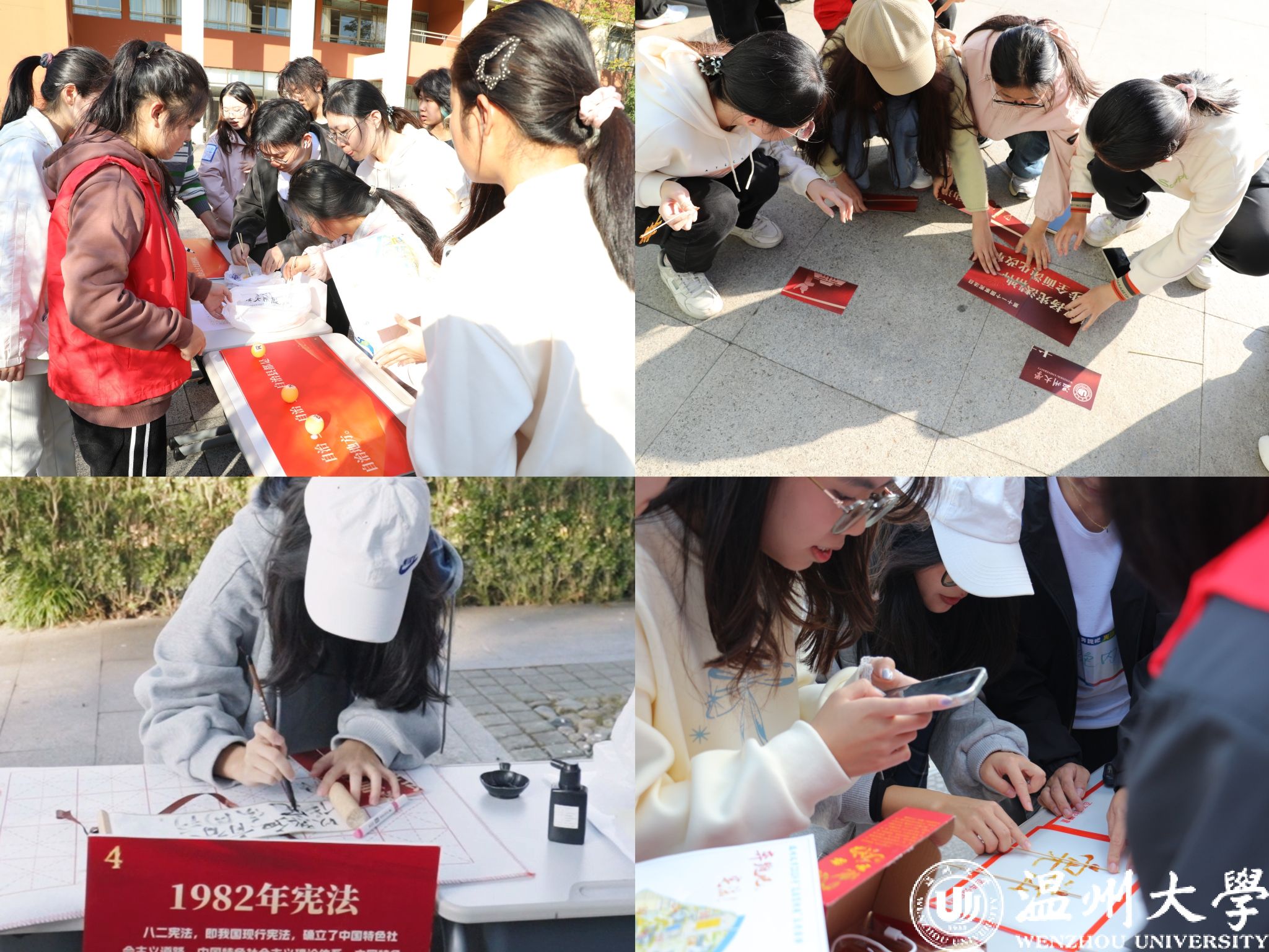 数十支寻宝小分队意外穿越回1954年,只为得到一本神秘的红色宝典——宪法,数次“穿越时空”,在他们的见证下,宝典经历一次次的优化……12月1日,“奔跑吧·宪法”校园定向赛在温大校园活力开启。活动共设九个代表不同年份的点位(1954、1975、1978、1982年四部宪法的颁布与1988、1993、1999、2004、2018年五次修宪),各点位活动精彩纷呈,将宪法宣传与传统文化、趣味活动深度融合,青年员工在笔墨之下感受传统书法与现代法治的交融,在糖香四溢中见证非遗糖画与宪法的奇妙相遇。“奔跑吧·宪法”校园定向赛不仅是体能和耐力的考验,更是宪法知识、识图能力、个人意志的精彩角逐,丰富了法治文化的内涵和外延。