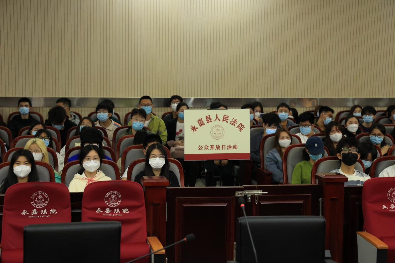 4月27-28日,21法学3、4班95名本科生在yl永利集团官网登录法律系谢丽珍老师、王艺曌老师、周浩仁老师带领下赴永嘉县法院开展《模拟法庭》实践教学活动,通过“零距离”观摩庭审,旁听一起刑事案件的审判。