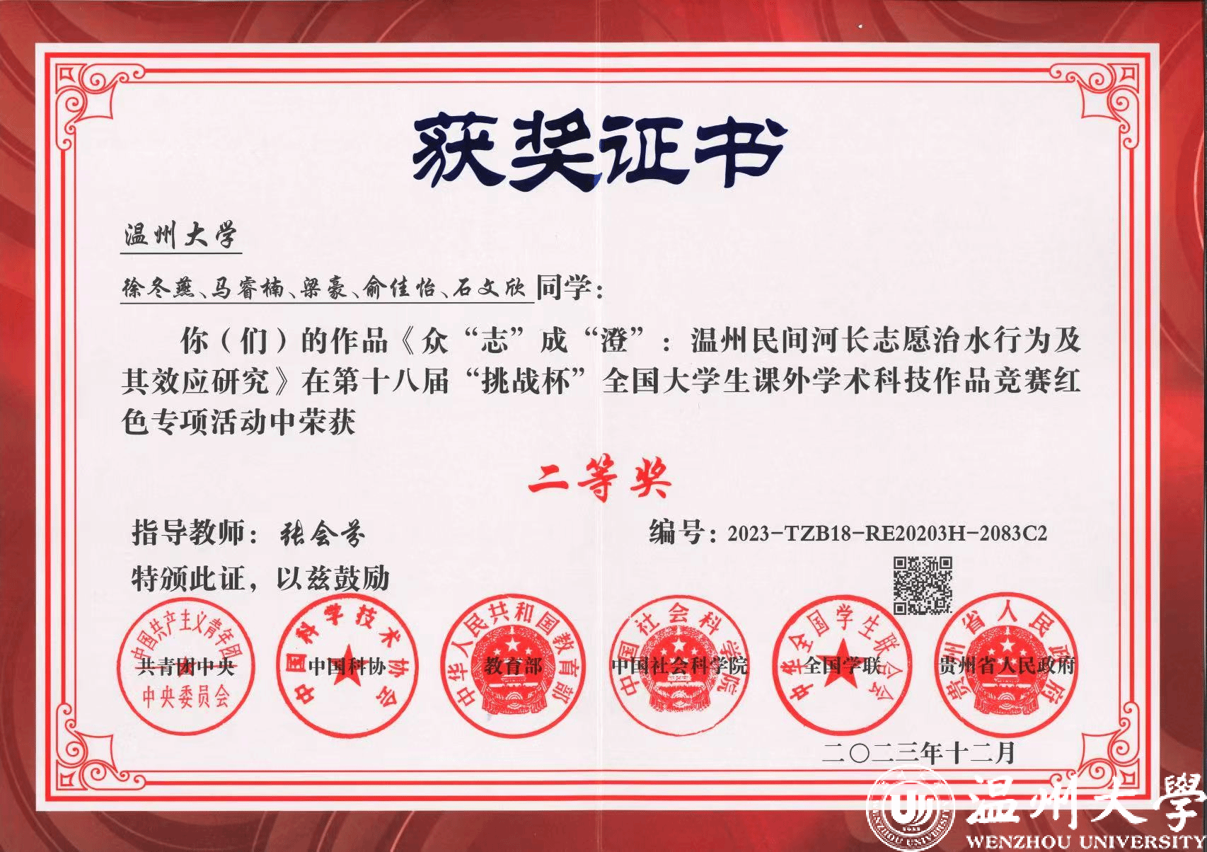 图3 第十八届“挑战杯”全国老员工课外学术科技作品竞赛红色专项赛二等奖